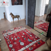 La teinte rouge vibrante de ce tapis ajoute une touche audacieuse à votre espace tout en conservant un lien avec les traditions berbères. La texture à poils ras garantit une surface lisse et facile à entretenir, parfaitement adaptée aux foyers actifs.